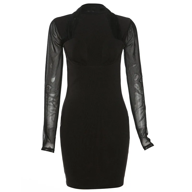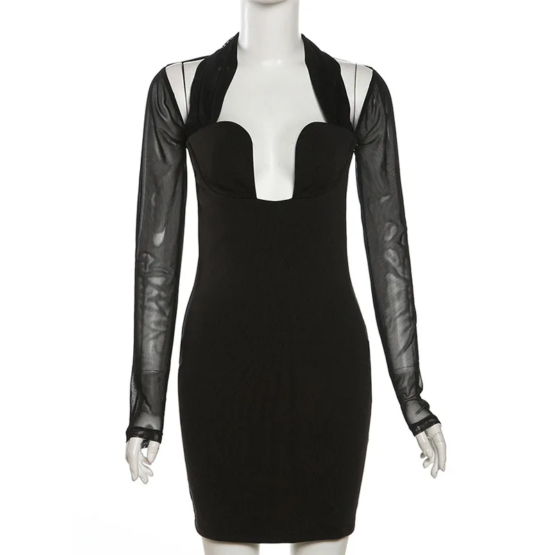 European and American style new cross-border women's fashion hanging neck sexy low cut mesh patchwork buttocks wrapped dress