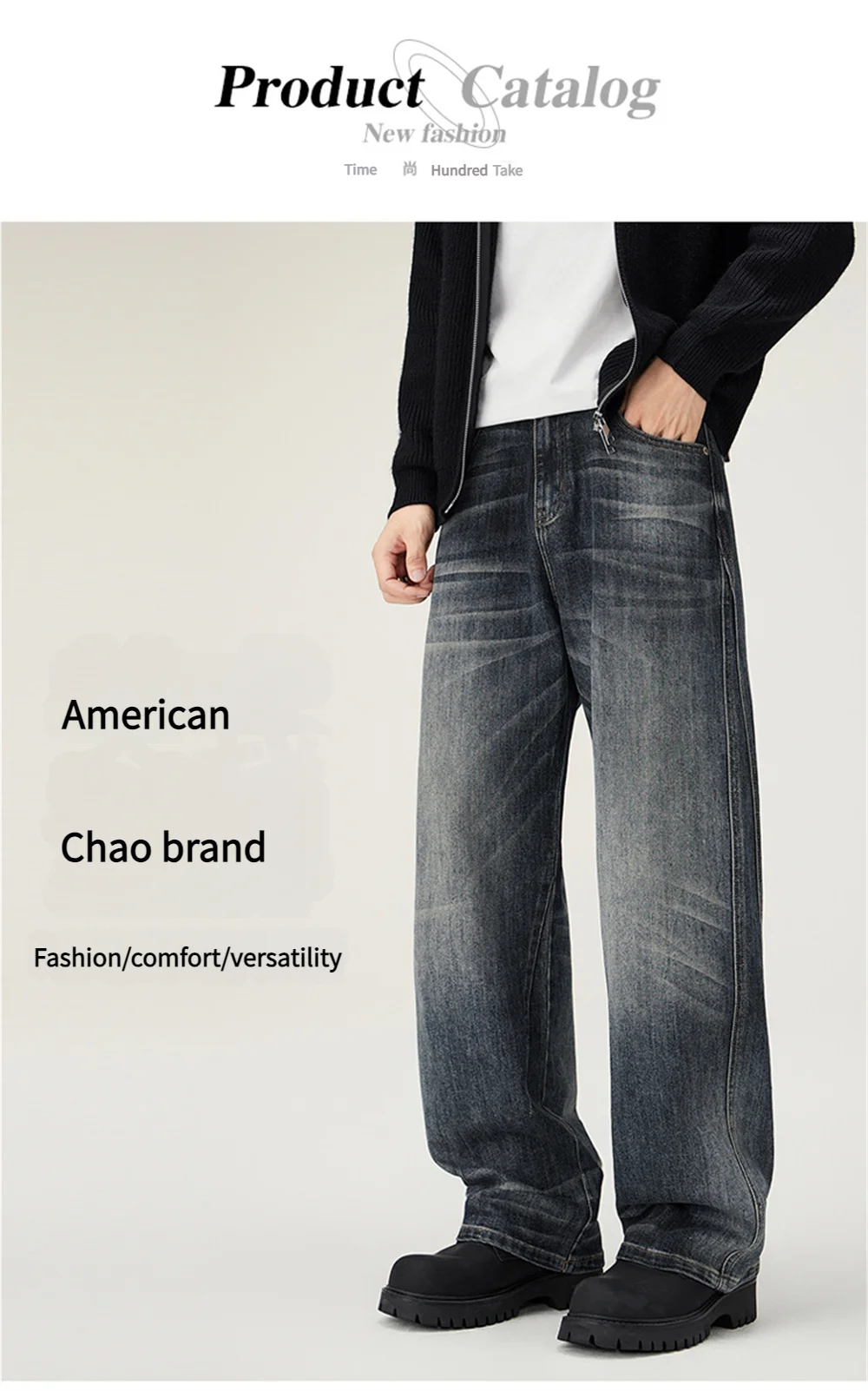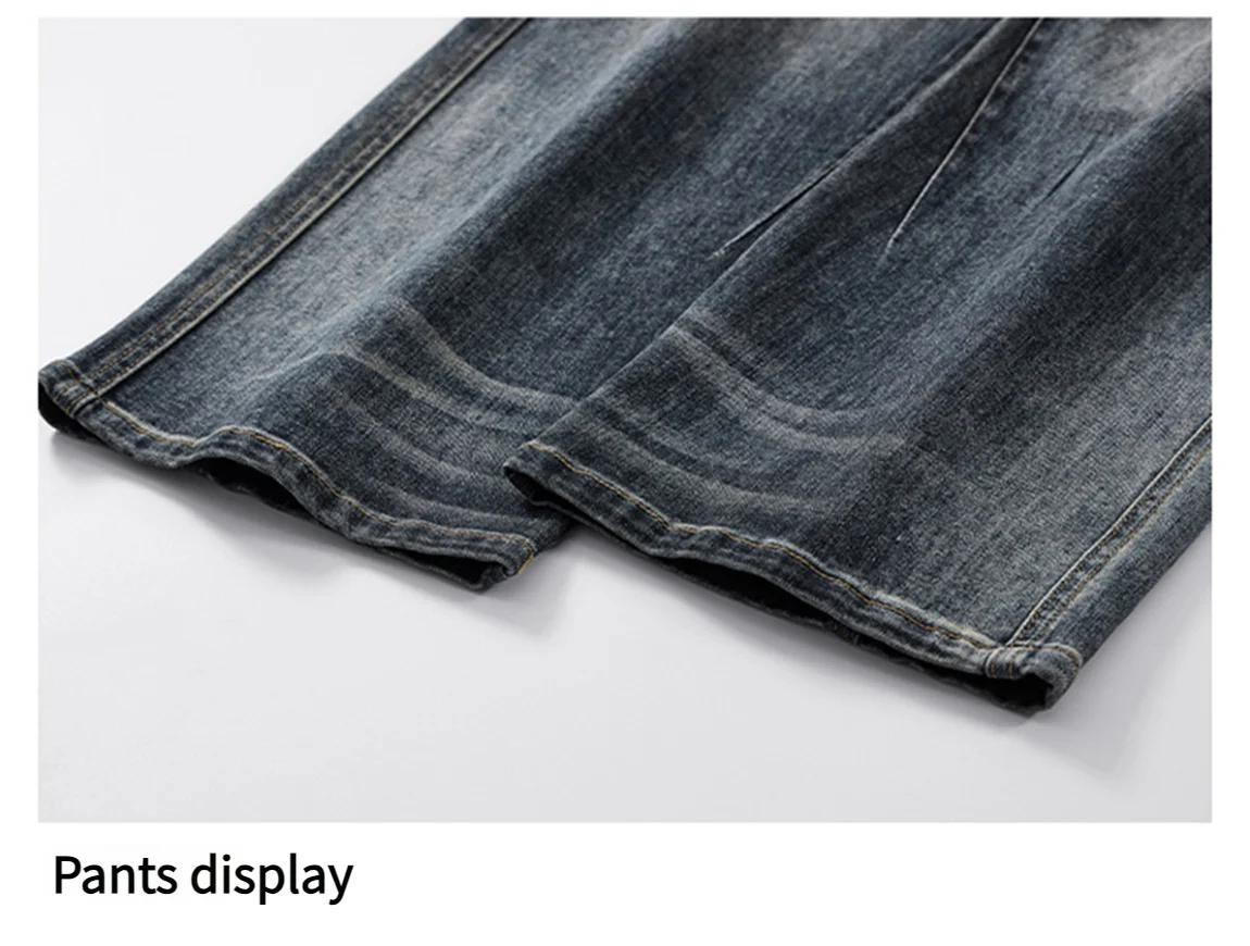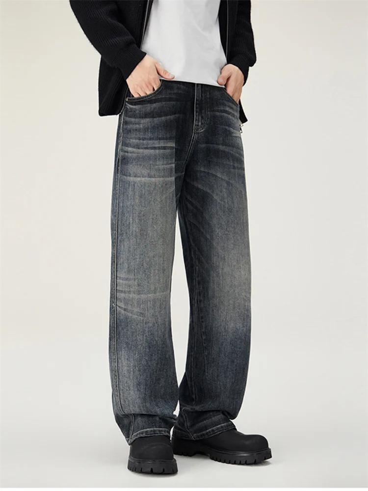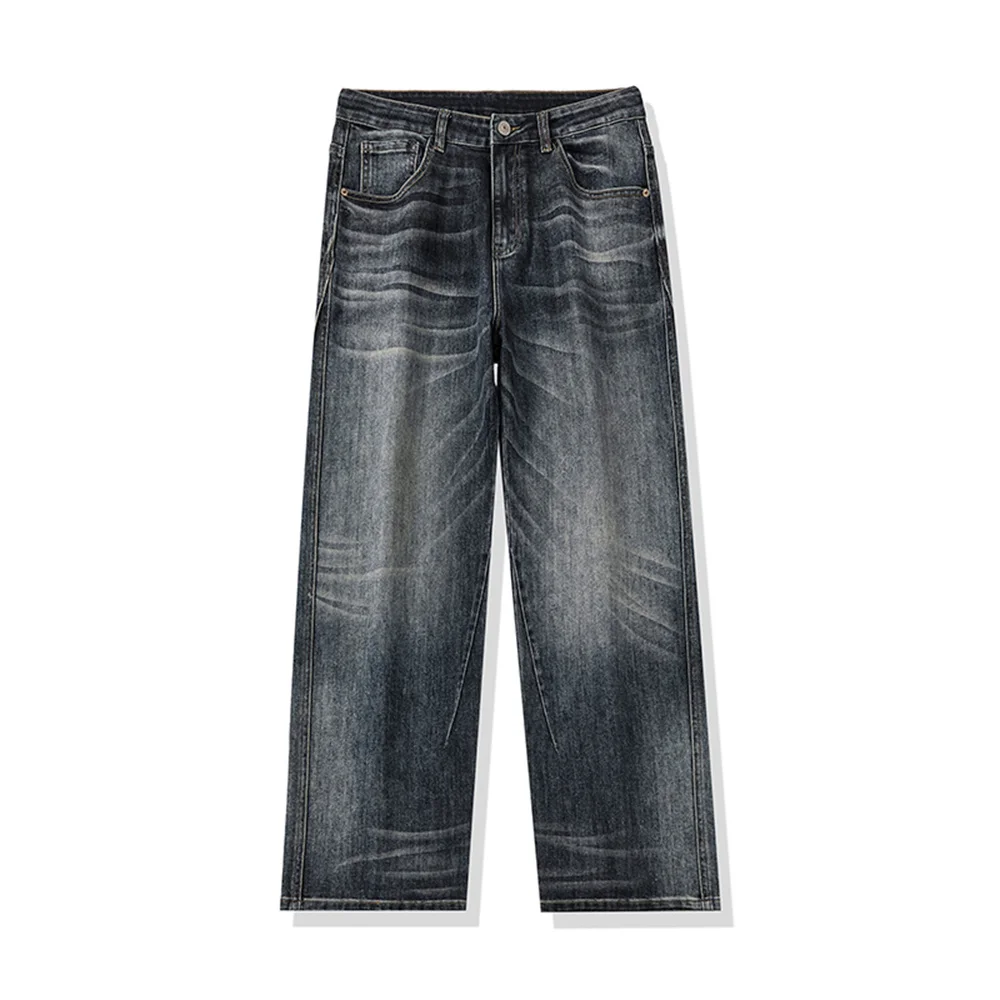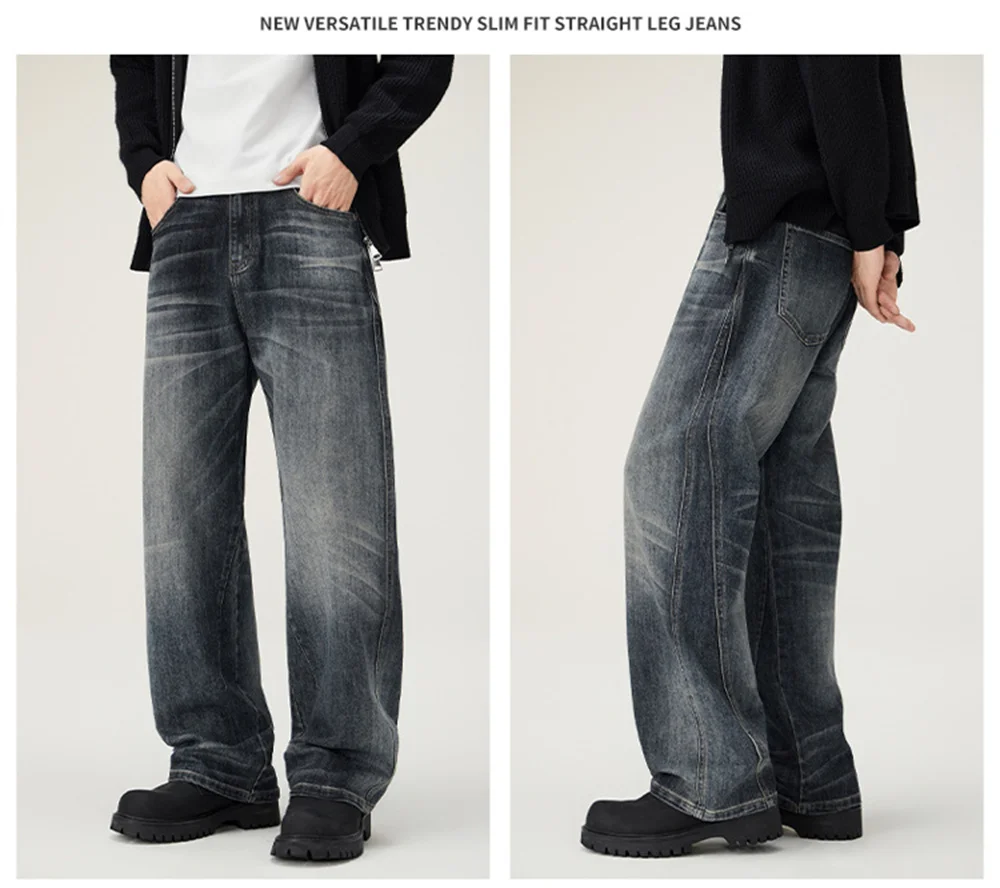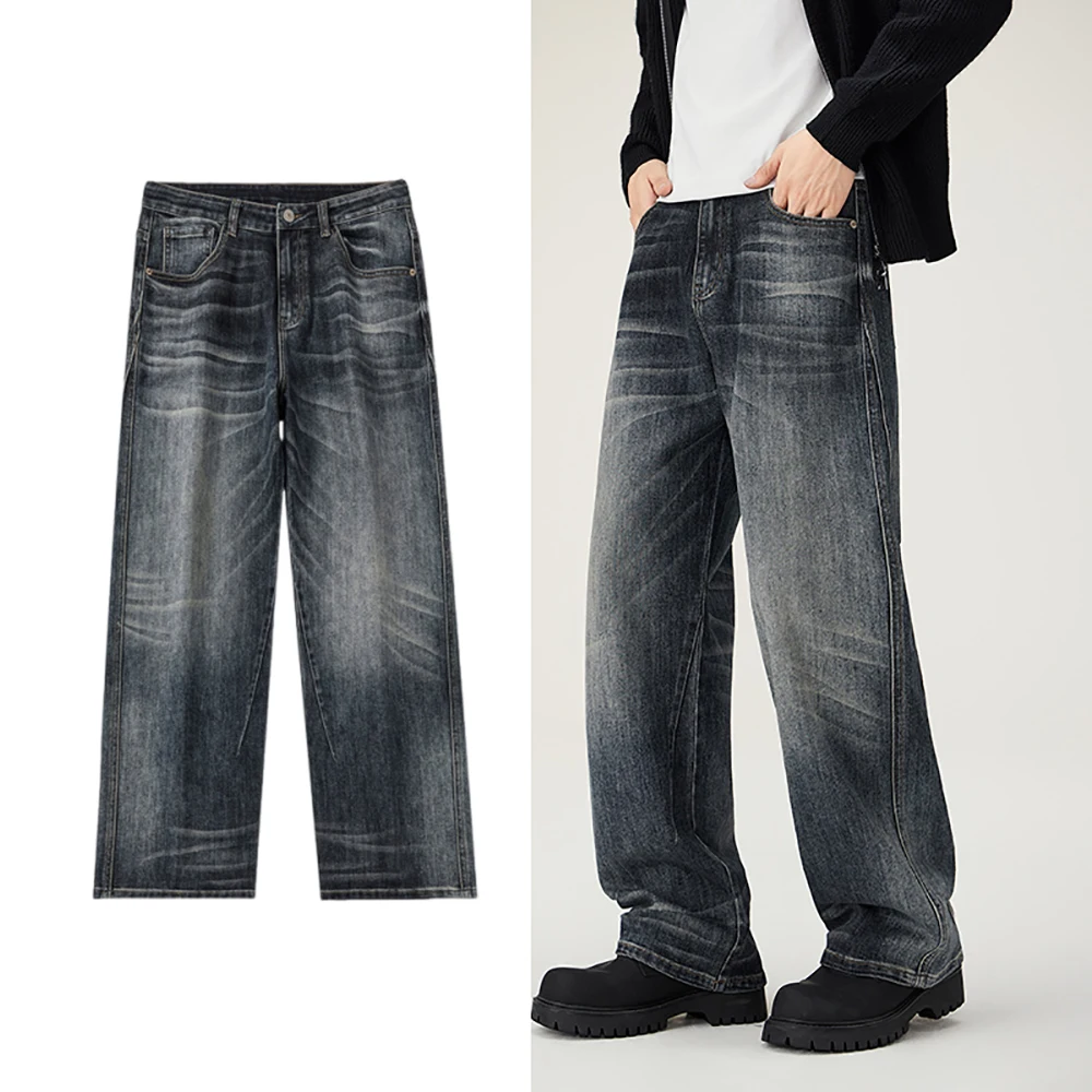 Men's loose wide-leg jeans, men's summer jeans, men's washed-out blue jeans, men's fashionable street versatile trousers